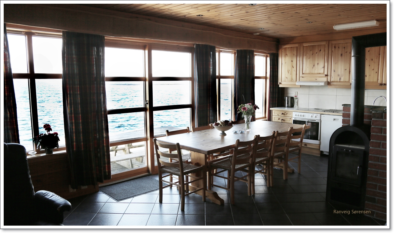 Das Ferienhaus liegt direkt am Meer mit wunderschöner Aussicht über den Fisterfjord. Alle Häuser sind geschmackvoll eingerichtet, mit Kiefernholz verkleidet und kunstvoll dekoriert. Ausstattung 1. Etage Stube mit Küche, großes Schlafzimmer und Abstellkammer mit Gefriertruhe (ca. 400 l.) Bad mit Dusche und WC, Whirlpool und Sauna. Die Stube ist gemütlich eingerichtet mit Kamin, TV und DVD, Radio und CD. In der Küche finden sie alles was sie brauchen zum Beispiel: Kühlschrank, Herd, Mikrowelle, Spülmaschine, Kaffeemaschine, Wasser Kocher, Handmixer und Toaster. In der 2. Etage befinden sich 4 Schlafzimmer mit jeweils 2 Einzelbetten, die bei Bedarf auch zum Doppelbett zusammengestellt werden können sowie ein Bad mit Dusche und WC. Dachboden mit 2 Schlafplätzen sowie TV und Radio/CD.